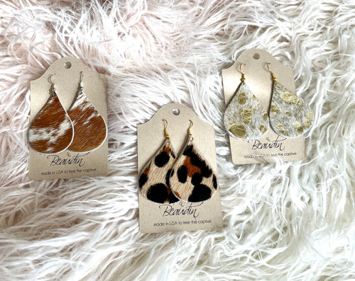Hair on Hide Teardrop Earrings