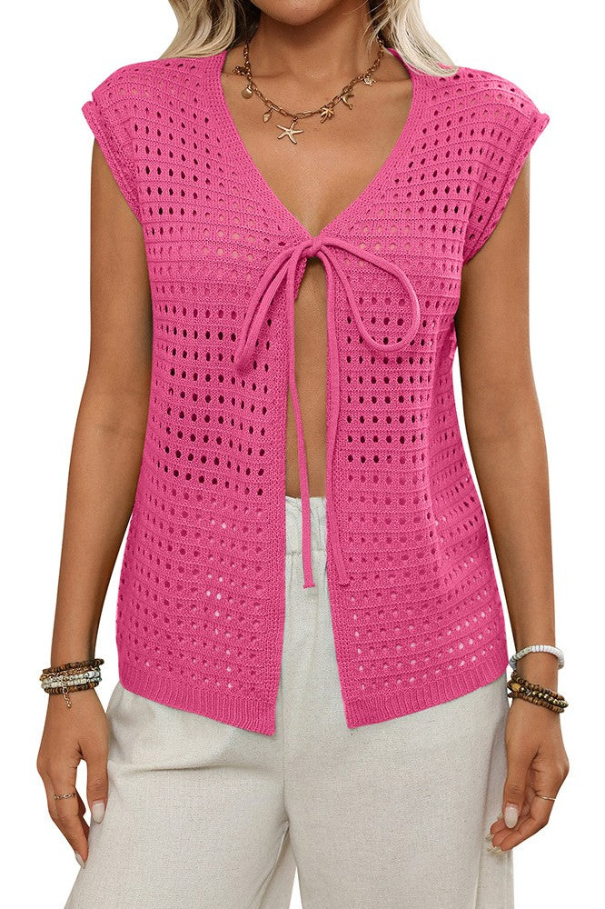 Hollow Bowtie Short Sleeve Sweater